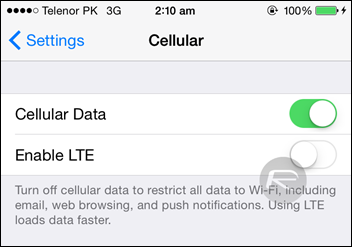 Với các thị trường chưa có kết nối 4G LTE, bạn có thể tắt đi để tiết kiệm pin bằng cách truy cập Settings > Cellular > Enable LTE.