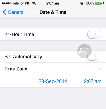 iOS tự động cập nhật thời gian, để làm điều này cần tới vị trí và làm pin hết nhanh hơn. Để vô hiệu hóa, truy cập Settings > General > Date & Time rồi chuyển Set Automatically sang Off.