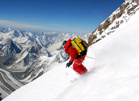 So với Everest, nóc nhà thứ 2 thế giới với độ cao 8.611 mét K2 thuộc rặng Karakoram giữa Trung Quốc và Paskistan, hẻo lánh và hiểm trở, có thời tiết thay đổi chóng mặt hơn nhiều. Chính thế lại làm cho nó trở thành một trong những phần thưởng được thèm muốn nhất đối với các vận động viên trượt tuyết hàng đầu hành tinh. Cuồng phong, tuyết lở và những cú ngã vô tình chỉ mới nguy hiểm cấp 1. Năm 2010 nhà leo núi Fredrik Ericsson đã thiệt mạng trong khi “vượt qua thử thách” từ độ cao 250 mét dưới chân đỉnh này.