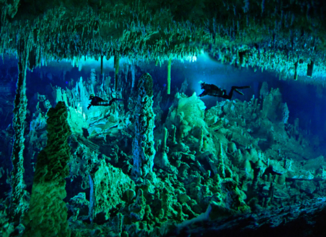 Khi quyết định lặn sâu vào các hang đá vôi tự nhiên ngập nước rất dễ lạc Blue Holes ở Bahamas là bạn đã quyết định lập kỉ lục mới về môn lặn vào hang hiểm trở nhất thế giới. Khi đã vượt qua các đường ngầm đầy khí độc bên ngoài để vào sâu bên trong, bạn sẽ thấy một vương quốc đủ các loại kì quan trong đó có cả những cụm đá hàng chục nghìn tuổi, các di vật của người tiền sử cùng hóa thạch các loài cá sấu và rùa đã tuyệt chủng từ lâu.