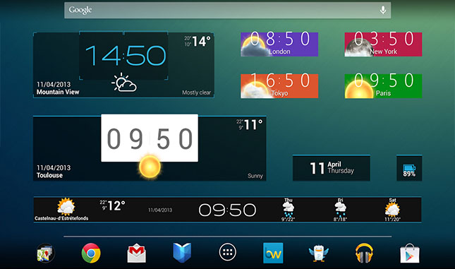 Nếu bạn dùng Android 4.2 trở lên, hãy cài DashClock Widget. Đây là ứng dụng widget thay thế màn hình khóa cho Android. DashClock Widget bao gồm một số phần mở rộng (extension) cho phép người dùng nhanh chóng truy cập để xem thông tin về thời tiết, thông báo về cuộc gọi nhỡ, tin nhắn chưa đọc hoặc kích hoạt đèn pin… Ứng dụng hoàn toàn miễn phí.