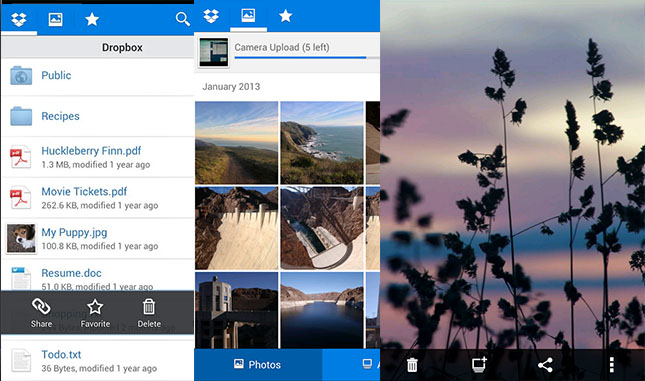 Nói về lưu trữ đám mây, Dropbox là một trong những ứng dụng được dùng phổ biến nhất. Ứng dụng cho phép bạn sao lưu ảnh, video, tài liệu… lên đám mây để truy cập từ mọi nơi như trên điện thoại Android, máy tính và thậm chí cả website của Dropbox. Người dùng có thể lưu ảnh và video lên Dropbox và chia sẻ với bạn bè.