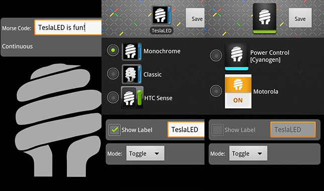 TeslaLED Flashlight cho phép bạn dễ dàng biến điện thoại thành đèn pin bằng cách dùng đèn flash của camera. TeslaLED Flashlight có một widget để người dùng nhanh chóng bật đèn pin từ một thanh trượt trên màn hình.