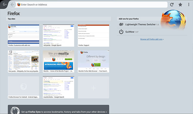 Firefox cũng là trình duyệt nhiều tính năng được yêu thích bởi nhiều người dùng Android. Với Firefox, người dùng có thể dễ dàng tùy chỉnh trình duyệt cho phù hợp với thói quen duyệt web. Firefox còn được đánh giá cao nhờ hỗ trợ nhiều add-on hữu ích, ví dụ add-on cho phép chặn quảng cáo, quản lý mật khẩu…