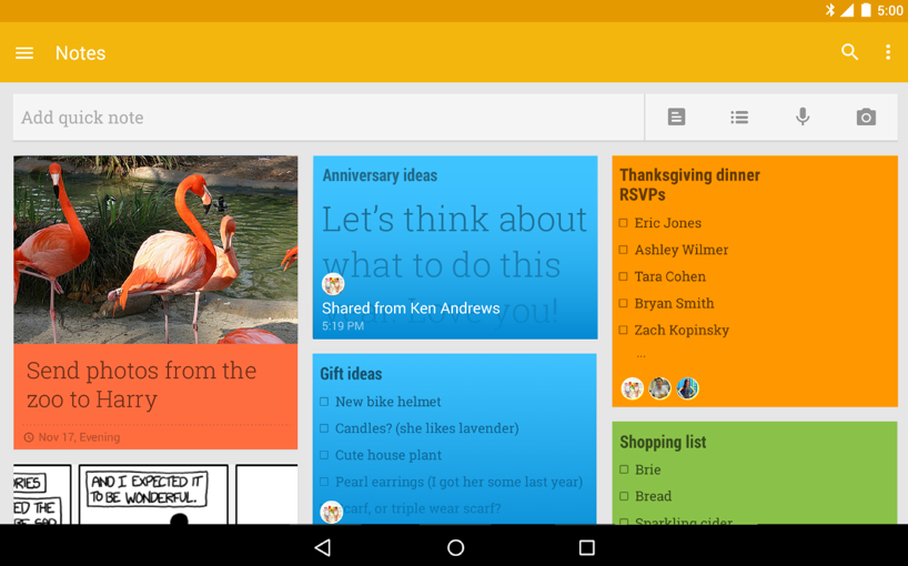 Google Keep là một ứng dụng nhắc việc và ghi nhớ linh hoạt. Bạn có thể đặt màu cho ghi nhớ của mình và chụp ảnh từ ứng dụng, thậm chí còn hỗ trợ chuyển giọng nói thành văn bản.