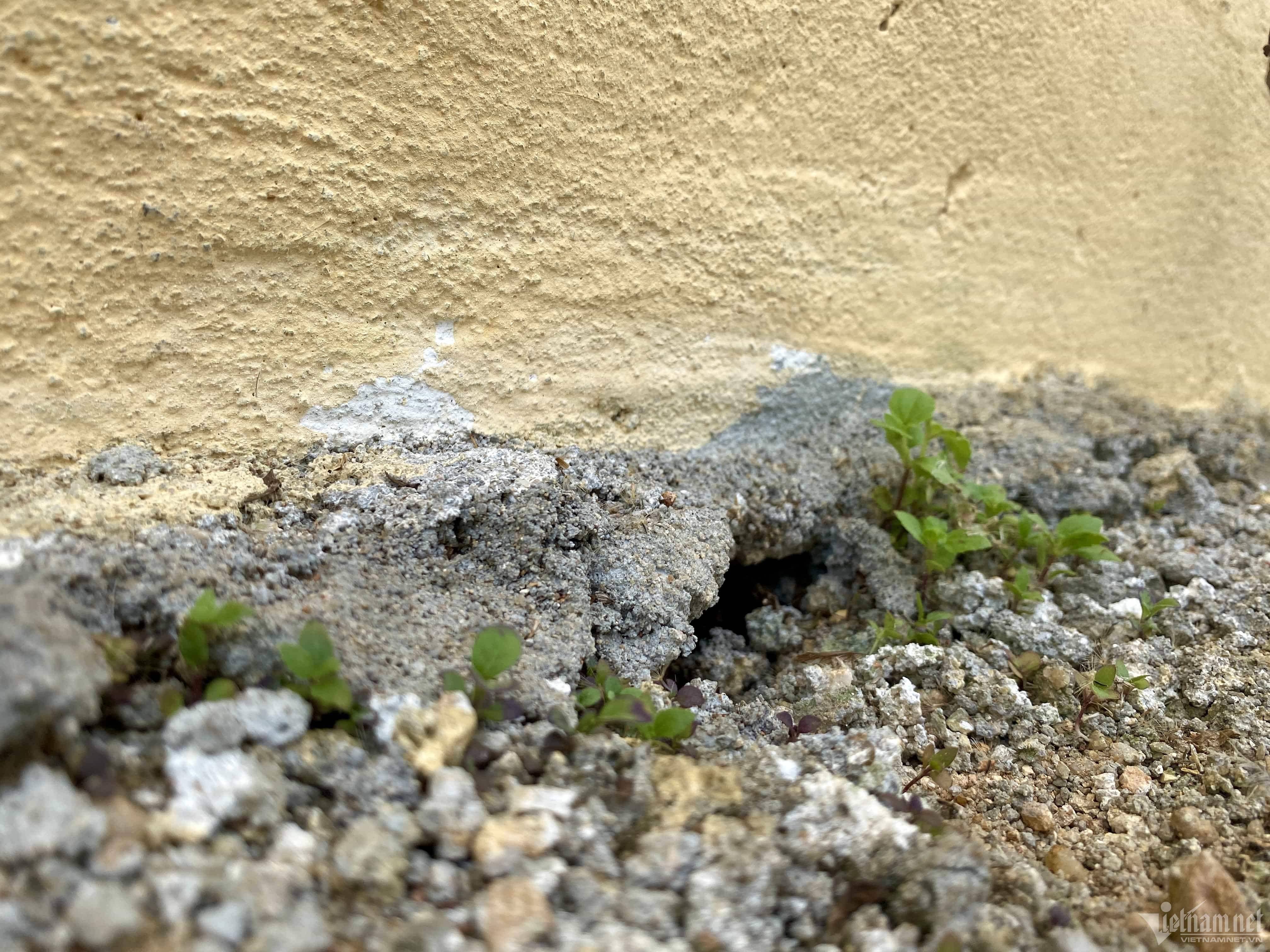 Tường rào của nhà máy đã có hàng chục điểm nứt, chân tường sụt lún.