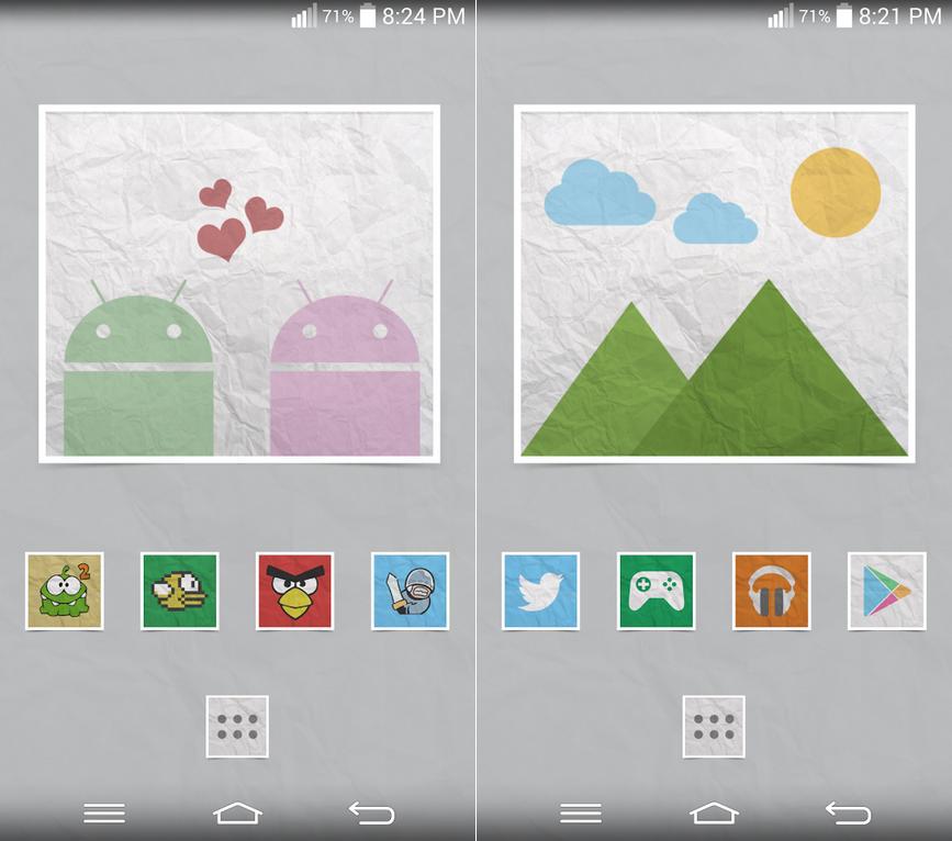 Với bộ icon này, các biểu tượng trông sẽ như được vẽ trên giấy rồi cắt, dán lên màn hình điện thoại.