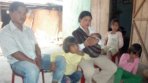 | Vợ chồng anh A Phạn và 4 đứa con còn lại. |