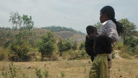 Dù mới sinh chưa đầy tháng, nhưng vì nhà nghèo, con đông, chị Y Công phải cùng chồng địu con lên rừng bẻ đót mưu sinh.