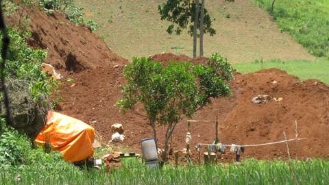 Một điểm khai thác quặng thiếc lậu nơi giáp ranh địa bàn 2 huyện Tân Kỳ và Quỳ Hợp chụp ngày 10/5. Nơi đây được coi là điểm nóng của quặng tặc - Ảnh: Quốc Huy