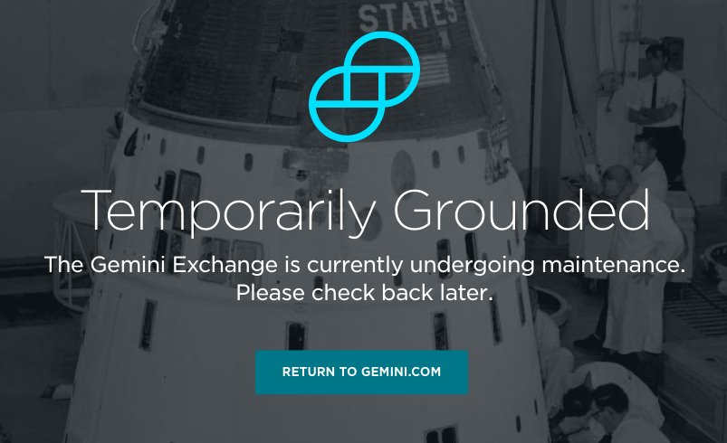 Sàn Gemini - nơi được 2 đại gia song sinh nhà Winklevoss đầu tư vào năm 2015 đã bị nhiều người dùng than phiền rằng không thể đăng nhập vào trang web của công ty. Với lỗi "504 gateway time-out", có nghĩa là các máy chủ của không đáp ứng yêu truy cập. Công ty cũng đăng trạng thái mới thông báo rằng hệ thống đang quá tải và được bảo trì.