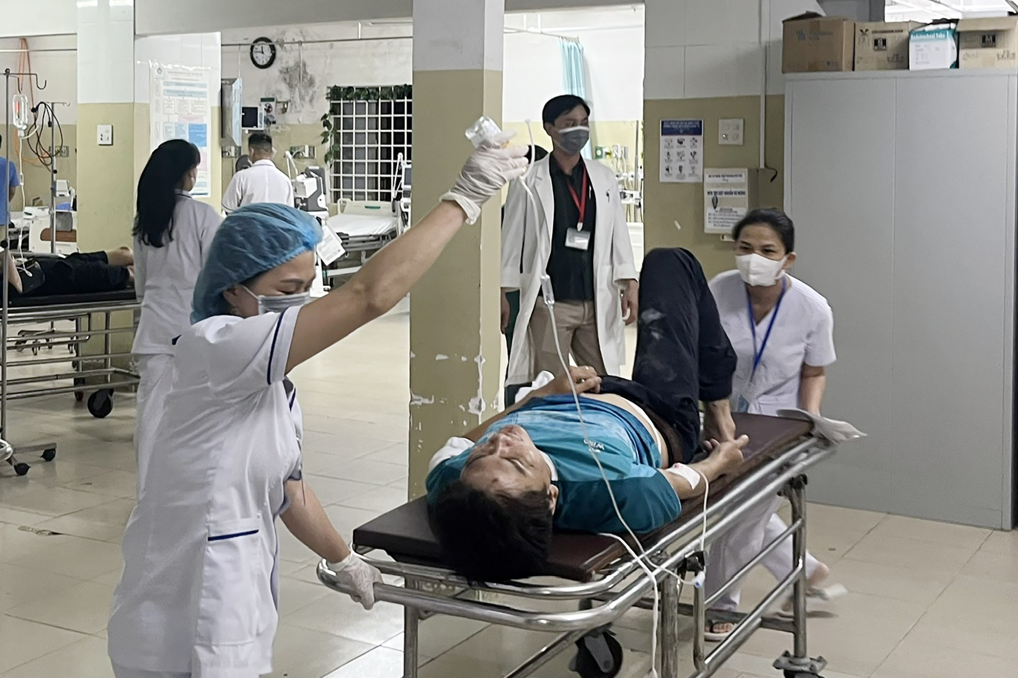 Một bệnh nhân nữ bị chấn thương nặng, dù được phẫu thuật cấp cứu nhưng không qua khỏi, tử vong vào sáng 18/6. Một số trường khác bị thương nặng được điều trị tích cực tại bệnh viện. Trong số đó, 3 trường hợp nặng đã được phẫu thuật cấp cứu, 1 trường hợp xin chuyển tuyến trên, các nạn nhân bị thương đang điều trị các khoa của bệnh viện.