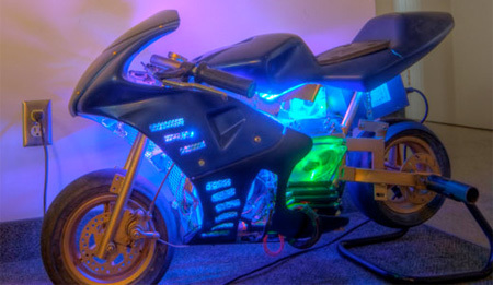 | Chiếc "mô-tô" trang trí rất nhiều đèn sáng choang. |