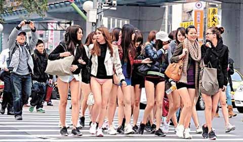 Bất chấp tiết trời lạnh giá tại Đài Loan, 20 cô gái xinh đẹp vẫn diện quần chip ung dung dạo phố khiến tất thảy cặp mắt của người qua đường phải trầm trồ vì ngạc nhiên.
