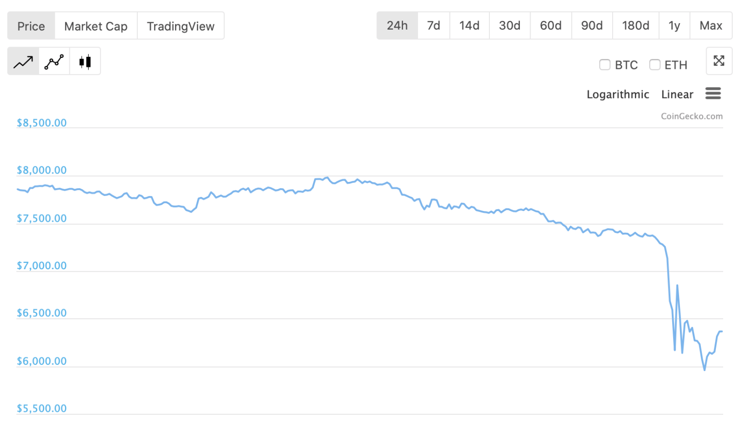 Trên sàn CoinGecko, 1 Bitcoin (BTC) trị giá khoảng 7.250 USD, tiếp sau đó giá BTC đã giảm xuống 6.160 USD. Hiện giao dịch, BTC vào khoảng 6.150 USD.