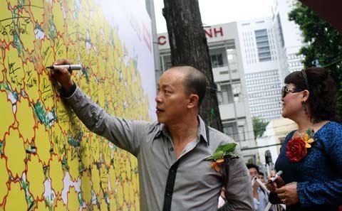 Nghệ sĩ Đức Hải ký tên tham dự chương trình.