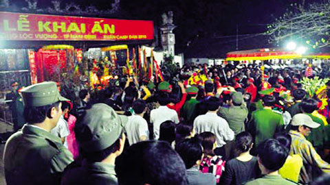 - Gần 2.000 người là công an, bộ đội, dân phòng... sẽ được huy động trong lễ khai ấn diễn ra vào đêm 14 rạng sáng 15 tháng Giêng Âm lịch (tức ngày 16/2 DL) tại đền Trần (phường Lộc Vượng, TP.Nam Định).