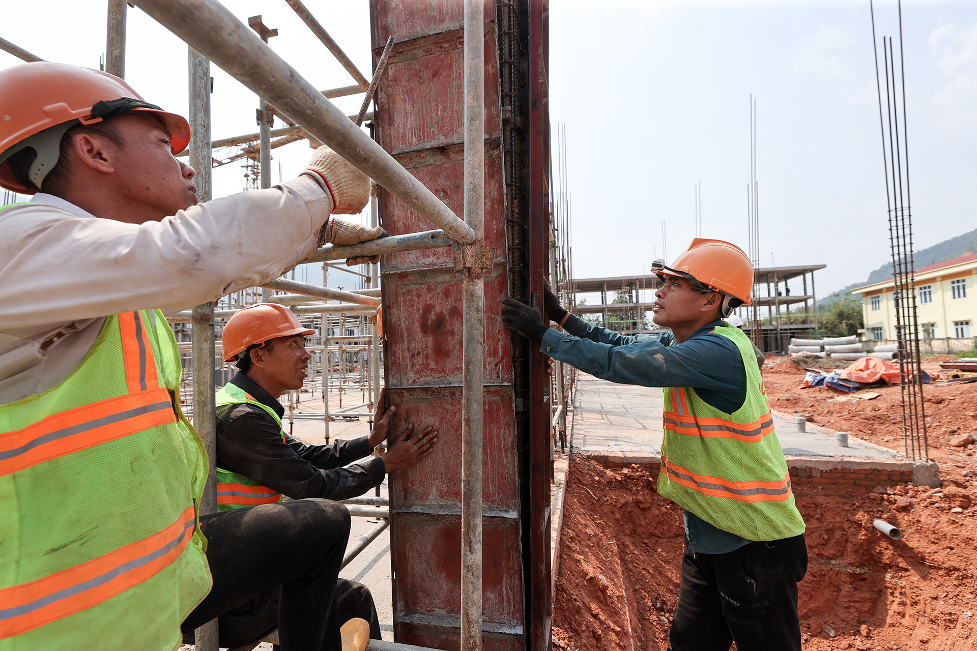 Công nhân thi công trường học tại Pa Tần. Ảnh: Lê Anh Dũng