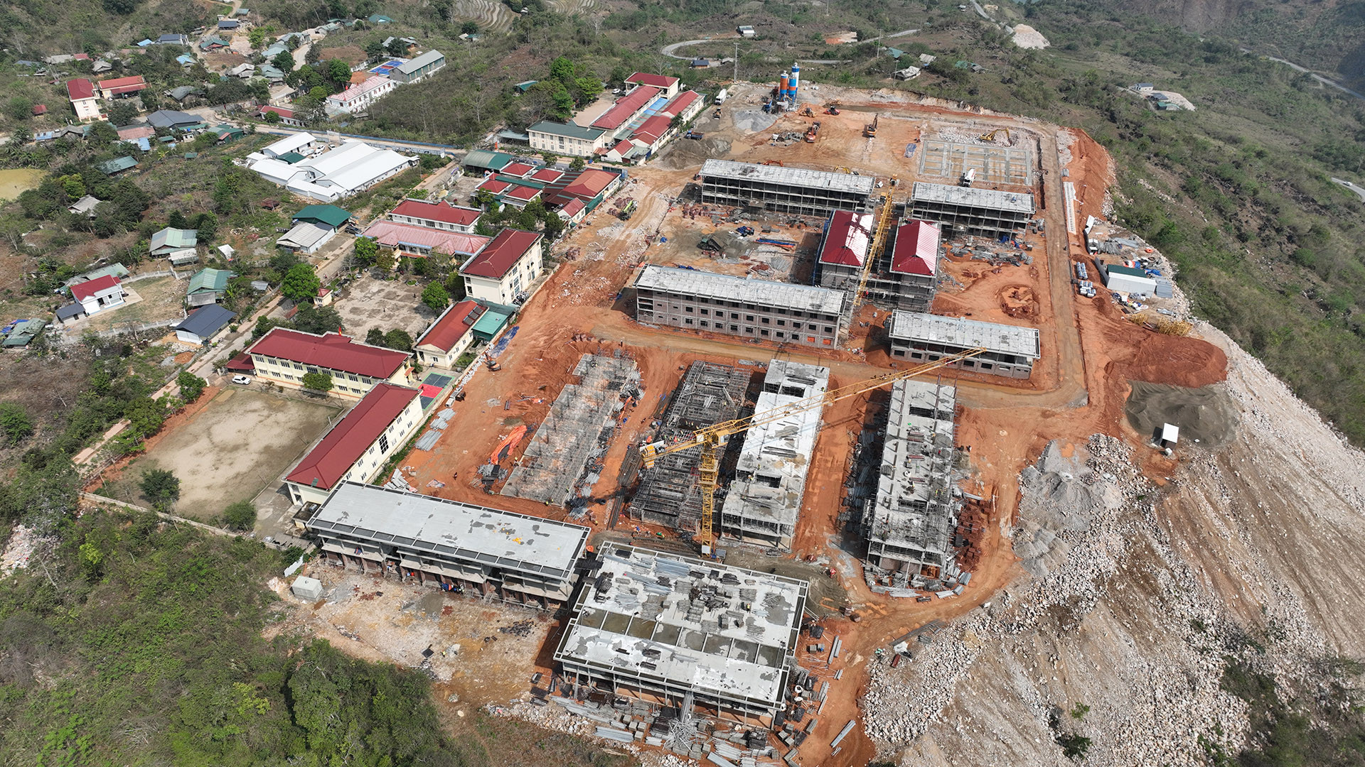 “Ngày nhận mặt bằng, trước mắt chúng tôi là ngọn núi đá sừng sững. Từng mũi khoan được cắm vào lòng đá, tiếng phá đá, bạt núi vang giữa rừng biên viễn. Hôm nay, khi rảo bước trên công trường rộng lớn, công trình trường học cao lừng lững thay vào những quả núi… cảm xúc như vỡ oà”, anh Thuận nói.