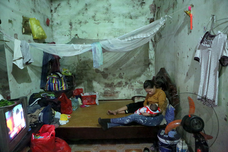 Cha mẹ đi làm suốt ngày, ở nhà, lũ trẻ tự trông nhau. Đông con, nhà chật nên buổi tối các bé phải “san bớt” xuống nhà ông bà nội ngủ nhờ.