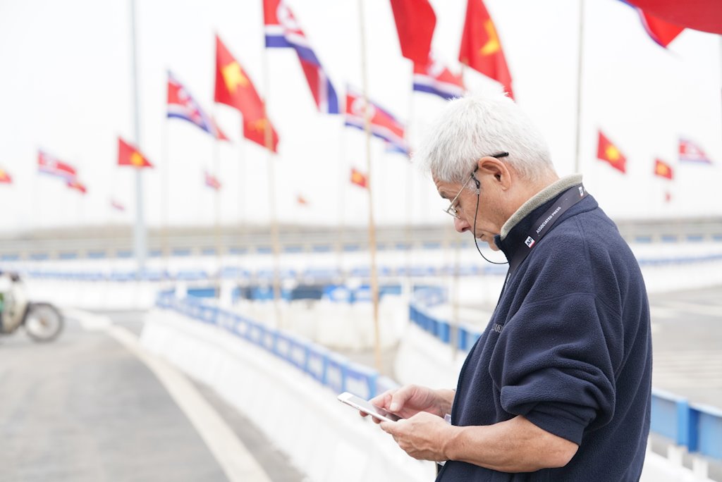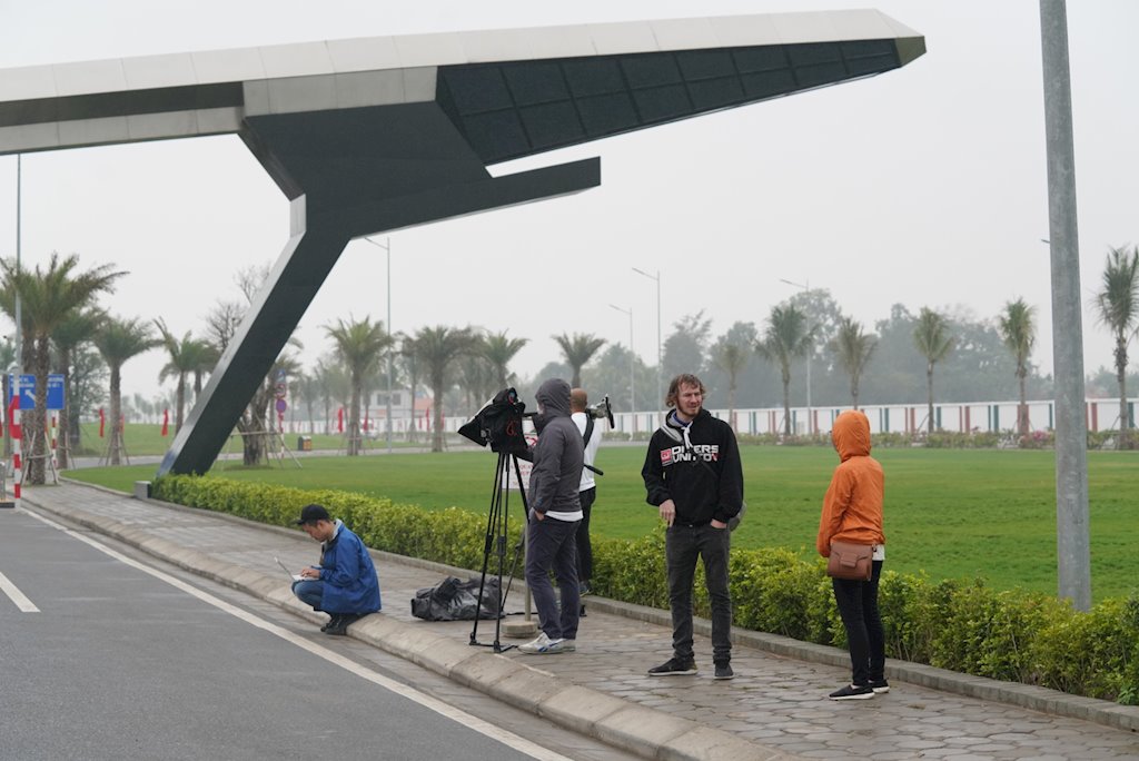Các phóng viên nước ngoài chuẩn bị tác nghiệp |