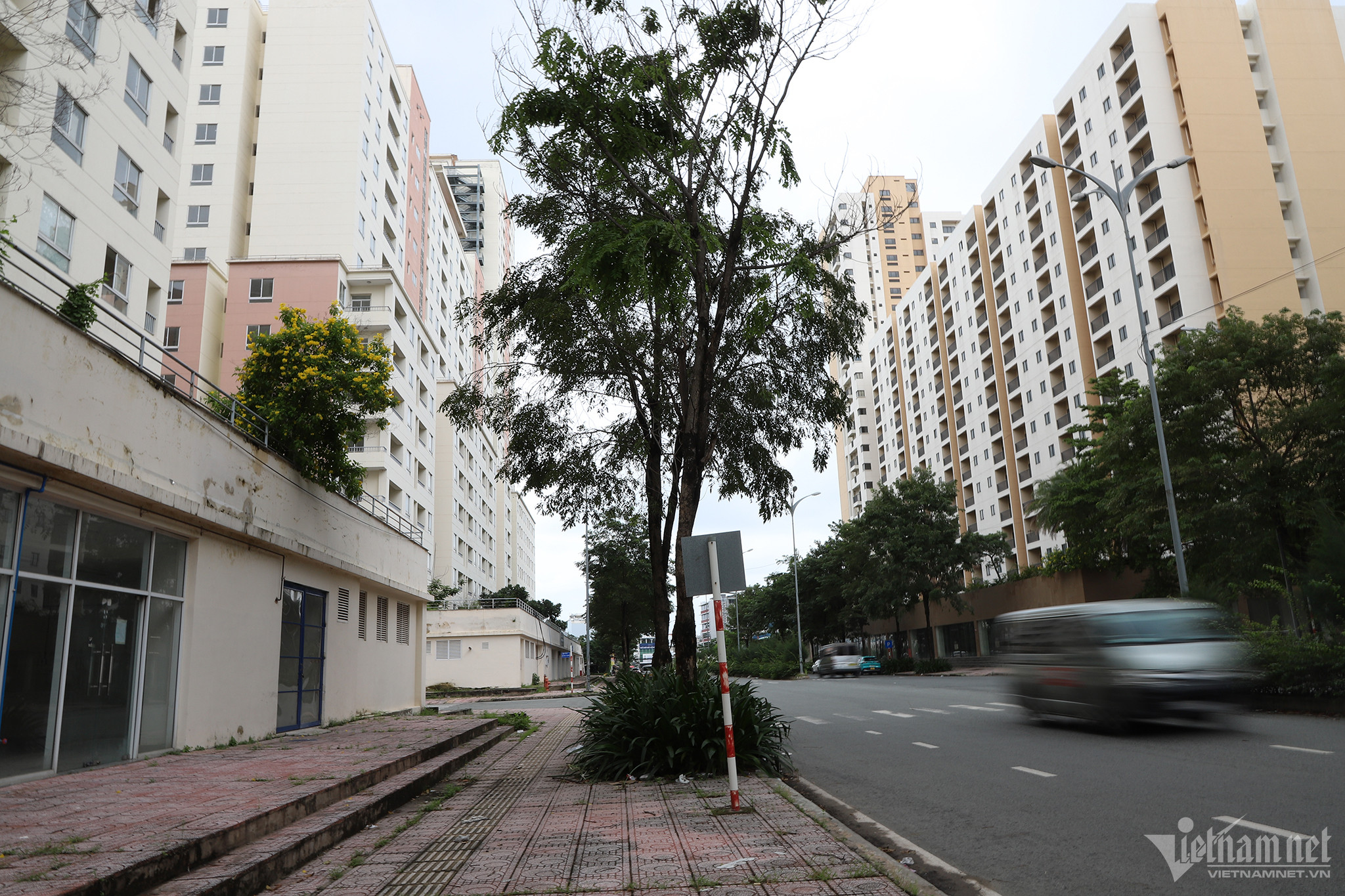 Kể từ khi dịch Covid-19 được kiểm soát, khu chung cư trở lại trạng thái bỏ trống, hiện có dấu hiệu xuống cấp.