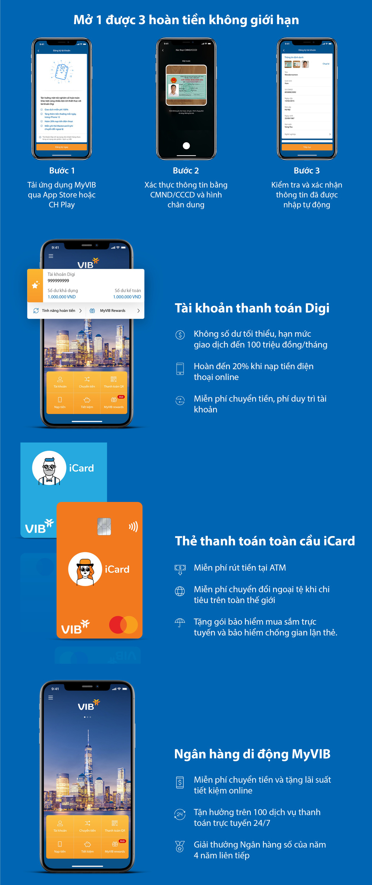 Xem thêm thông tin về ứng dụng ngân hàng số MyVIB và ưu đãi mở tài khoản Digi tại đây: