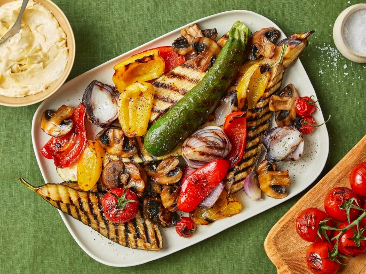 Với món rau củ nướng, bạn có thể sử dụng bất kỳ loại rau nào yêu thích. Chỉ mất 30 phút chuẩn bị và chế biến với các nguyên liệu đơn giản, dễ tìm như bí ngòi, cà tím, ớt chuông, cà chua... bạn đã có thể sở hữu hương vị nướng tuyệt vời cho bữa tối mùa hè.