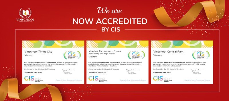 Hội đồng các trường Quốc tế (Council of International School - CIS) bắt đầu đánh giá và giám định các trường thành viên từ năm 1970. Ngoài việc cấp chứng nhận cho các trường đủ tiêu chuẩn, CIS cũng có các đợt giám định định kỳ để đảm bảo các trường đã được giám định liên tục duy trì chất lượng theo tiêu chuẩn của CIS. Vinschool là hệ thống giáo dục không vì lợi nhuận, liên cấp từ bậc Mầm non đến Trung học phổ thông do Tập đoàn Vingroup đầu tư phát triển, hướng đến một ngôi trường Việt Nam mang đẳng cấp quốc tế. Với hơn 36.000 học sinh tại 45 cơ sở trên toàn quốc, Vinschool đang tiếp tục nỗ lực không ngừng để thực hiện sứ mệnh ươm mầm tinh hoa, đào tạo học sinh trở thành những công dân có trách nhiệm, có hoài bão với đầy đủ phẩm chất và năng lực để sống hạnh phúc, thành công, góp phần tích cực xây dựng đất nước và hội nhập quốc tế. |