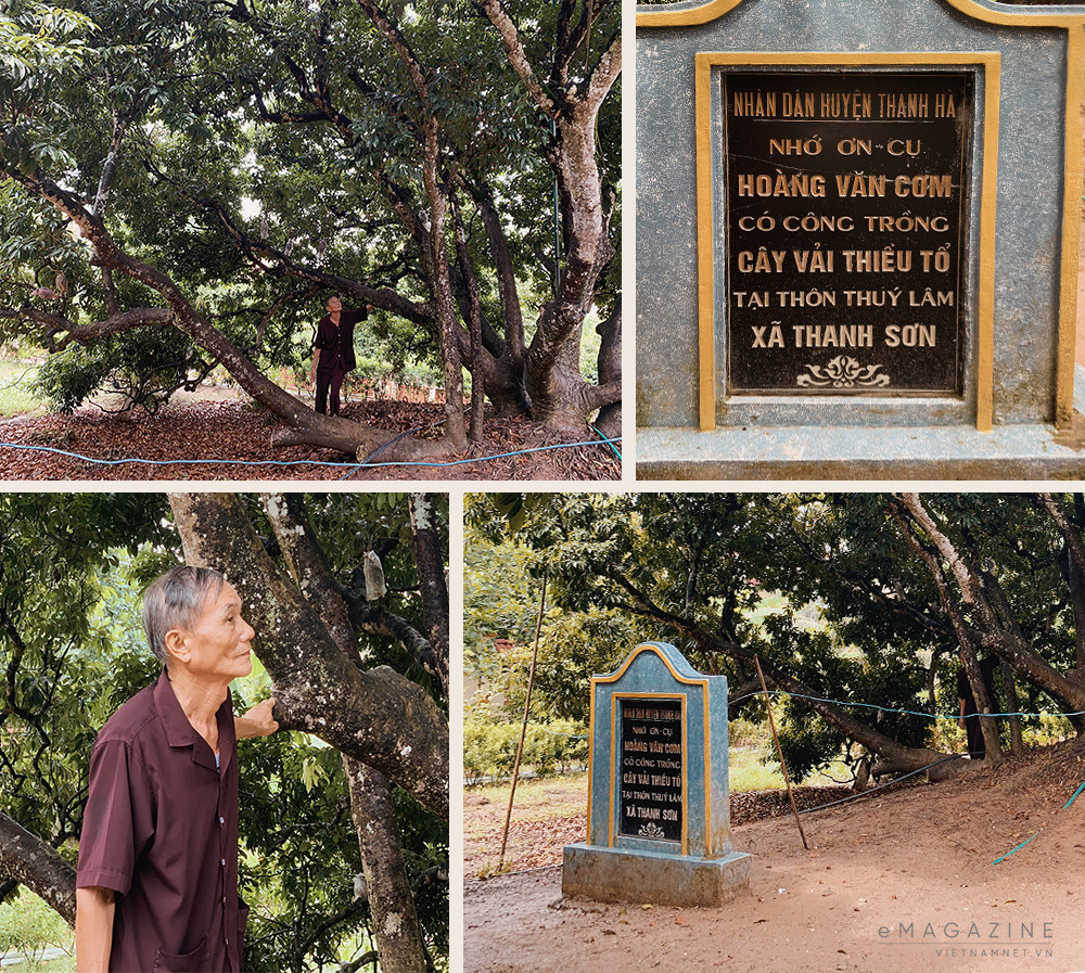 Đứng trước cây vải thiều sai trĩu cành, quả chín đỏ, ông Hoàng Văn Lượm - cháu đích tôn đời thứ 5 của cụ Hoàng Văn Cơm, thôn Thuý Lâm (Thanh Sơn, Thanh Hà, Hải Dương) tự hào cho biết, vải thiều ở Hải Dương, Bắc Giang và các tỉnh thành khác đều có nguồn gốc từ cây vải tổ cụ Cơm trồng.