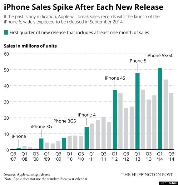 Avi Greengart, Giám đốc nghiên cứu tại hãng phân tích Current Analysis, dự đoán lần ra mắt iPhone 6 sắp tới của Apple sẽ thành công rực rỡ. Mẫu iPhone thế hệ kế tiếp được đồn đại dùng màn hình 4.7 inch và 5.5 inch, ngoài ra còn một mẫu smartwatch được trông chờ từ lâu.