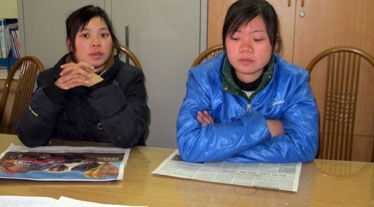 | 2 chị em Loan và Huyền tại cơ quan công an |