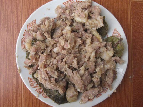 Đây là món nem thính với vị chua của thịt trộn với thính, lá ổi và được cuốn bên ngoài bởi lá chuối khô, sau khi chế biến, nem ngấu, mang đi nướng nên được gọi là nem nướng. Món nem này được làm từ thịt lợn miếng đem ướp với mắm, muối, bột ngọt, hạt tiêu... Thêm tỏi băm trộn tùy theo khẩu vị, đảo thật đều cho ngấm rồi rắc thính vào vừa đủ khô.