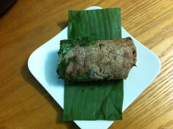 Lớp lá gói bánh bên trong thường là lá chuối khô hoặc lá chuối tươi hơ qua lửa cho dai và dẻo hơn. Bên ngoài mới là lớp lá dong để tạo màu xanh và vị thơm đặc trưng cho bánh.