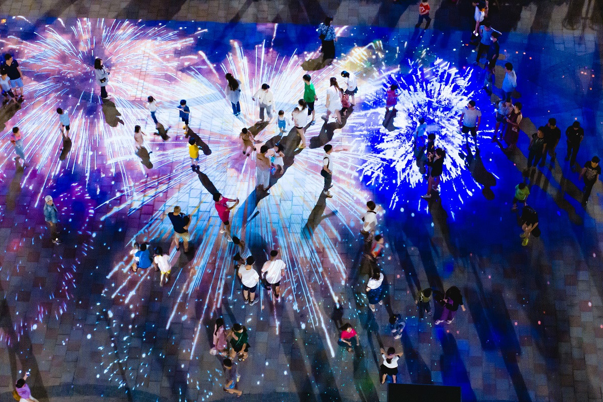 Không chỉ sở hữu những bức ảnh “sống ảo” như giữa trời âu, du khách còn được trải nghiệm màn tương tác ánh sáng ảo Mapping ngay trên phố đi bộ ở quảng trường Kinh đô ánh sáng. Mapping là công nghệ ánh sáng nổi tiếng toàn cầu và được áp dụng thành công ở nhiều quốc gia phát triển như Pháp, Nhật, Singapore, Hàn Quốc. Nay, mọi người có thể check - in độc đáo bằng những video tương tác trực tiếp với ánh sáng ảo huyền diệu này, như những đàn cá trong đại dương ánh sáng, những đàn bướm hoa rực rỡ sắc màu, màn pháo hoa lấp lánh.