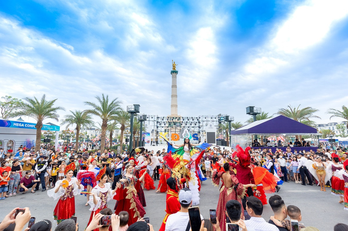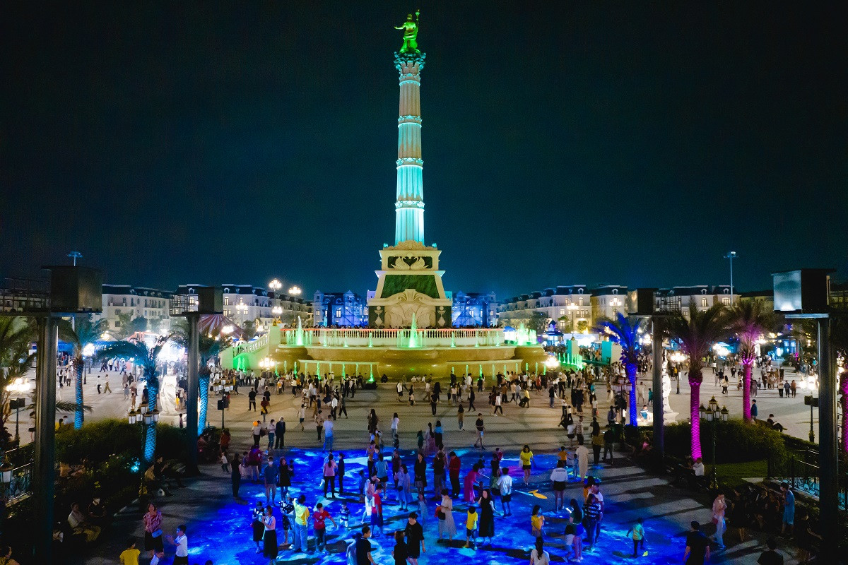 Quảng trường Kinh đô ánh sáng rộng 3,2ha với cột tượng Thần Ánh sáng cao 50m - biểu tượng cho sự thịnh vượng của siêu quần thể biển 1.200ha chính thức được thắp sáng. Những màn biểu diễn ánh sáng lighting rực rỡ kết hợp bữa tiệc âm thanh của những giọng ca hàng đầu showbiz Việt và các tên tuổi DJ đưa đến cho hàng nghìn cư dân và du khách một đại nhạc hội hoành tráng, bùng nổ mọi giác quan và cảm xúc trong kỳ nghỉ lễ từ 29/4 đến 3/5.