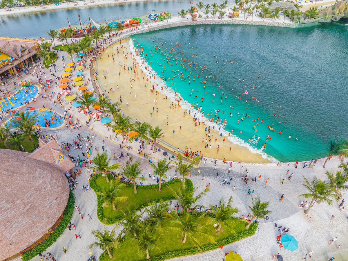 Bên cạnh chuỗi hoạt động tại quảng trường Kinh đô ánh sáng, du khách còn được tham gia những hoạt động thể thao - vui chơi - giải trí biển hấp dẫn tại công viên sóng Royal Wave Park. Royal Wave Park có diện tích 18ha - nơi vừa được ghi danh là Tổ hợp hồ nước mặn tạo sóng nhân tạo lớn nhất thế giới nằm trong khuôn viên khu đô thị, cùng hồ nước mặn Laguna rộng 9,3ha, công viên cát Sandy Park rộng 1ha… Du khách sẽ được đắm mình vào không gian miền biển đặc trưng với làn nước trong xanh, bãi cát trắng trải dài và những rặng dừa rợp bóng, cùng thưởng thức bữa tiệc BBQ nóng hổi cùng gia đình và bạn bè. Từ khi được khai trương cách đây tròn 1 năm, Royal Wave Park đã trở thành điểm đến yêu thích của người dân Thủ đô và các tỉnh phía Bắc.