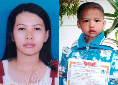 | 2 trong số 3 nạn nhân bị mất tích gồm: chị Nguyễn Thị Kim Phụng và con chị Phụng, tức cháu Phan Trí Thức. |