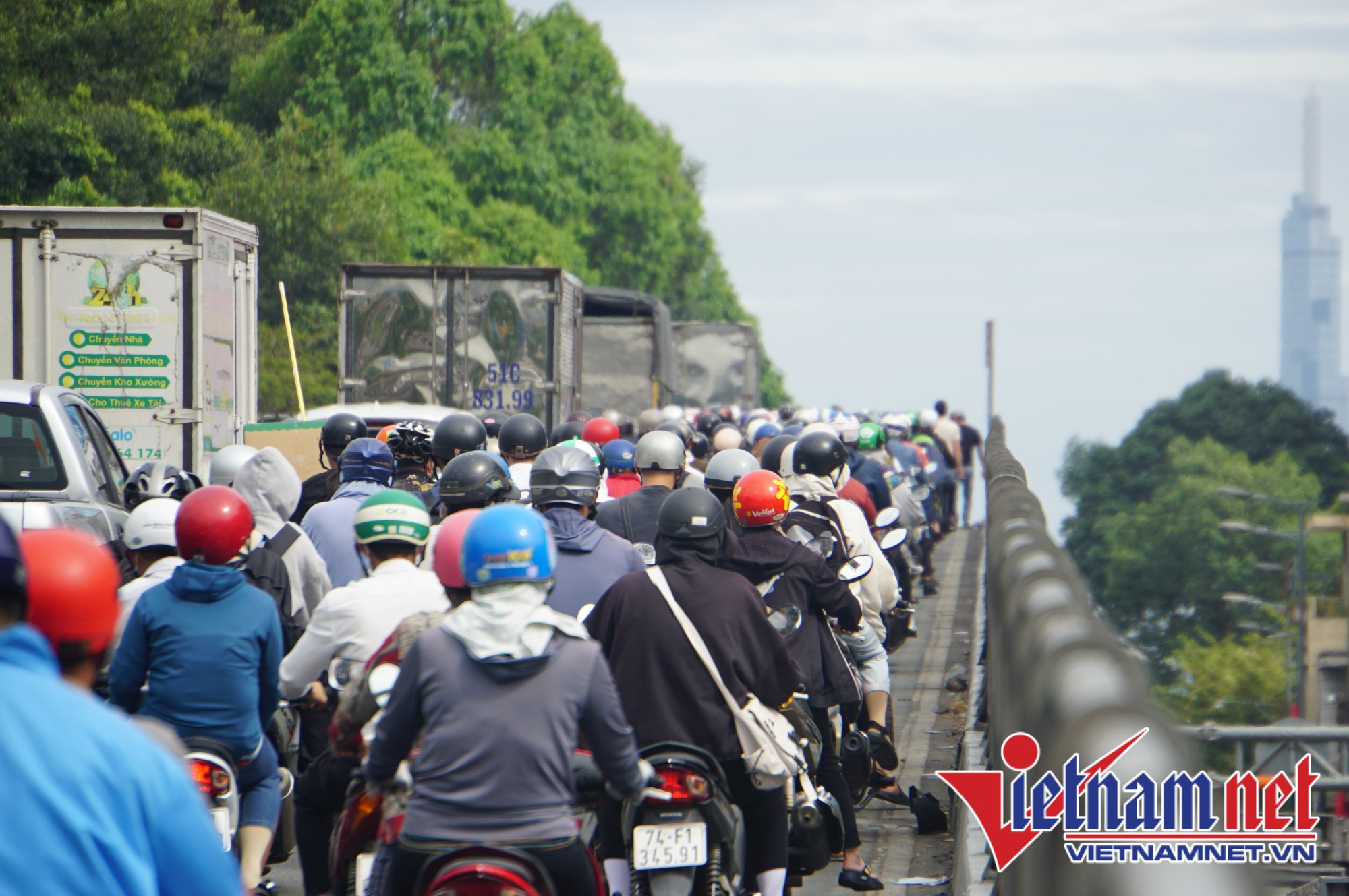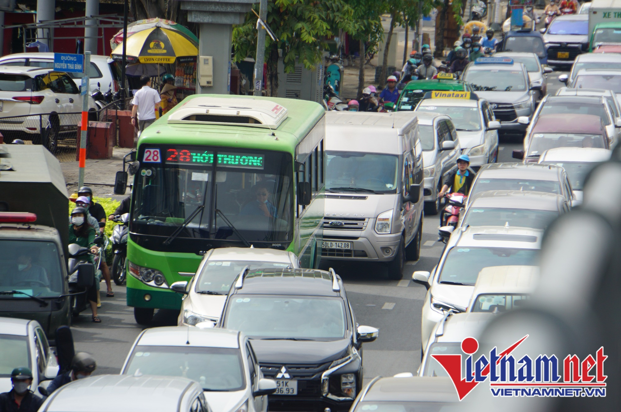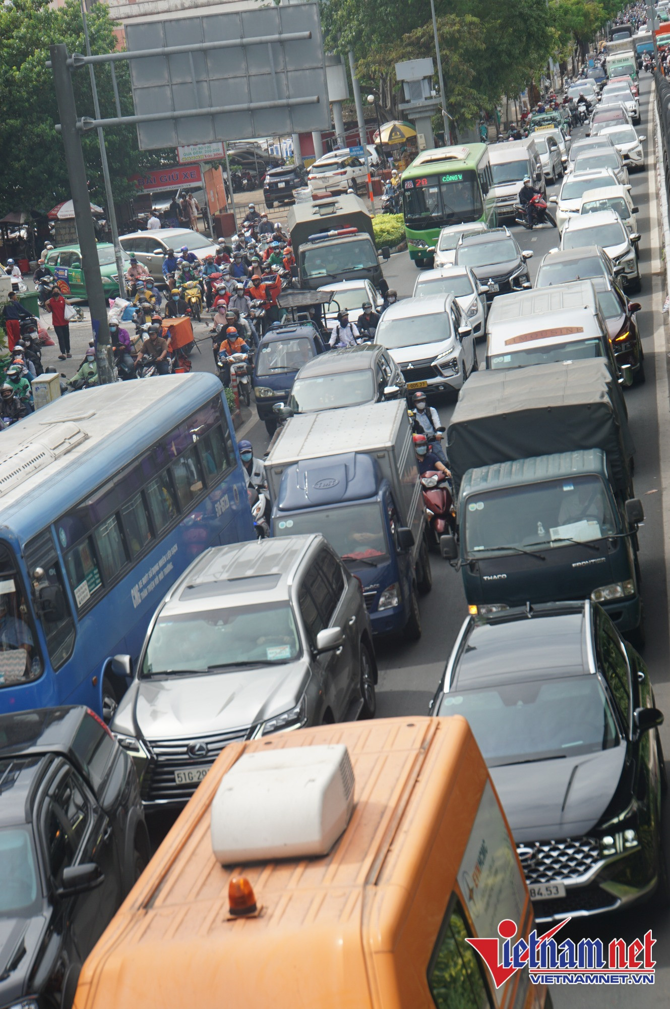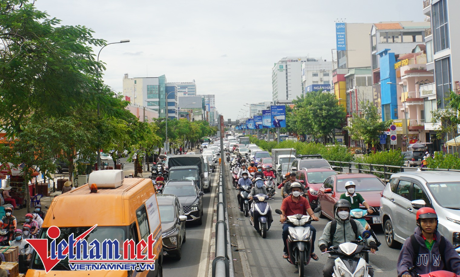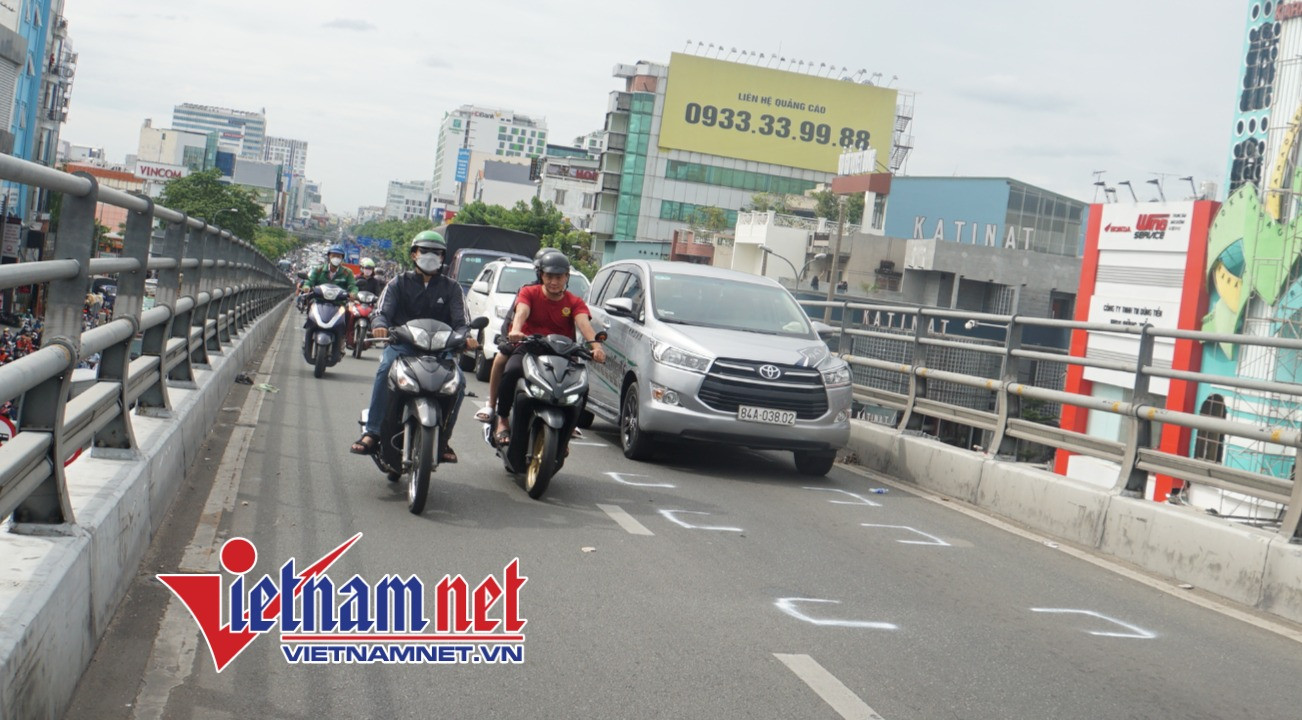 Tai nạn liên hoàn giữa 3 ô tô trên cầu vượt thép Lăng Cha Cả khiến hàng loạt tuyến đường cửa ngõ sân bay Tân Sơn Nhất ùn tắc nghiêm trọng.