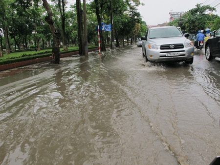 Đường Nguyễn Thị Minh Khai (TP Vinh) sau cơn mưa đầu sáng nay 24/6. ảnh: dantri.com |