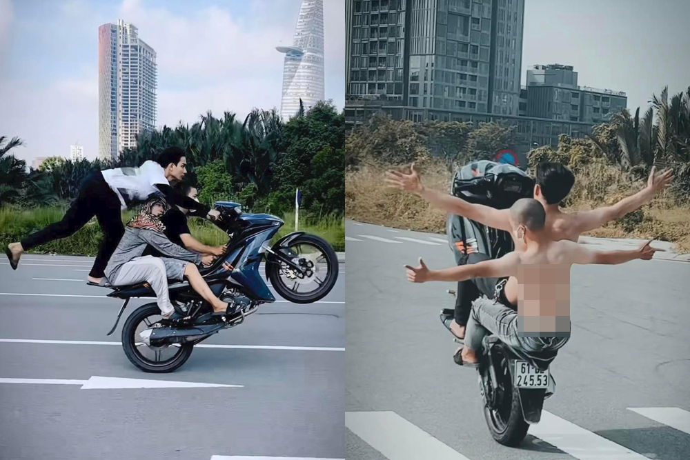 Bước đầu cả 3 khai nhận, khoảng 19h ngày 21/9, Hào đội tóc giả chạy xe máy chở theo Tân "biểu diễn” trên đường, còn Huy có nhiệm vụ quay clip. Nhóm này khai, mục đích biểu diễn bốc đầu máy “để gây tiếng cười” và đăng lên mạng xã hội.