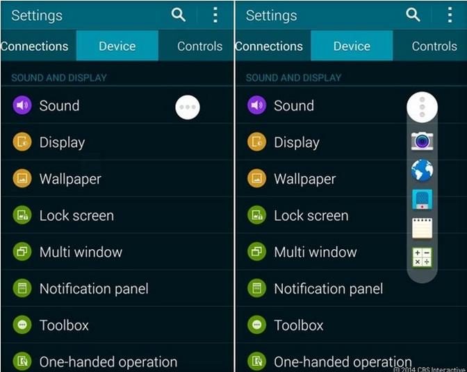 Nếu xem kỹ menu Settings, bạn sẽ thấy lựa chọn Toolbox. Sau khi kích hoạt tính năng Toolbox, một chấm màu trắng sẽ xuất hiện. Nhấn vào chấm trắng này và nó sẽ làm hiện shortcut tới các công cụ phổ biến như camera, trình ghi âm, trình duyệt, máy tính và ứng dụng ghi chú. Tuy nhiên, bạn có thể thay thế một shortcut trong danh sách này bằng shortcut của một ứng dụng khác bất kỳ.