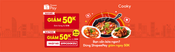 Với người thích cảm giác nấu nướng, chuẩn bị bữa ăn, bạn trẻ có thể “quẹo lựa” với ứng dụng Cooky. Đây là nơi người dùng có thể sắm nguyên liệu tươi sạch, chế biến sẵn. Từ đây đến ngày 30/4/2022, người dùng thân quen của ví ShopeePay sẽ được giảm 50 nghìn đồng cho đơn từ 200 nghìn đồng khi nhập mã SPPCOOKEU (tối đa 4 lần/khách hàng). Trong khi đó, người dùng mới sẽ nhận ưu đãi giảm 100% (tối đa 50 nghìn đồng) cho đơn từ 51 nghìn đồng trở lên. Chỉ mất vài phút đặt nguyên liệu và thanh toán, Cooky sẽ giúp bạn trẻ thổi bùng niềm vui lễ hội bằng những món ăn tự nấu hấp dẫn, đậm đà.