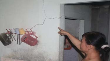 Nhà chị Trần Thị Ngọc xuất hiện nhiều vết nứt ngang dọc. Ảnh: Trần Chánh Nghĩa
