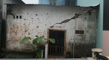 Nhà chị Trần Thị Ngọc (số 609/10/2) vết nứt không những hằn trên vách mà dưới nền đất cũng bị xé toang. Chị Ngọc nói, căn nhà mới xây dựng được vài năm nay giờ đã hoàn toàn hư hỏng.