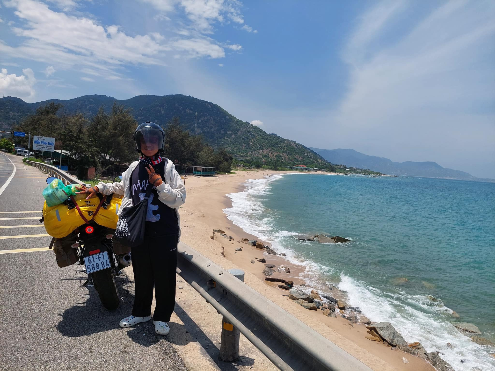 Ngày đầu tiên Sĩ Dương ngồi sau lưng ba chinh phục gần 500km tới Nha Trang