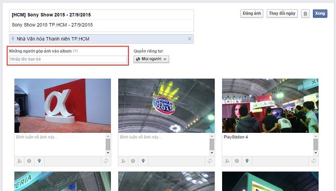 Tính năng này rất hữu ích dành cho những album gia đình, bạn bè và tiệc tùng. Bạn có thể dễ dàng cho phép người khác thoải mái đăng ảnh vào một album nào đó của mình, chỉ cần nhấn vào nút Chỉnh sửa khi đang xem album rồi nhập tên một hoặc nhiều người bạn ở mục Những người góp ảnh vào album. Sau khi thiết lập xong, album của bạn sẽ xuất hiện trong kho ảnh của họ và họ có thể đăng thêm ảnh vào album này.