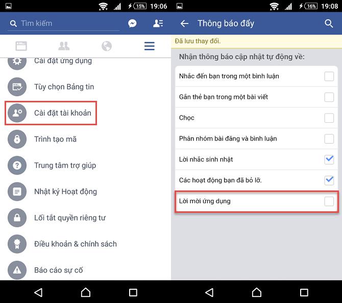 Bạn khó chịu với những lời mời chơi game phiền phức và nhảm nhí thỉnh thoảng lại xuất hiện trên điện thoại? Chỉ cần làm theo hướng dẫn sau để loại bỏ chúng: Từ ứng dụng Facebook trên di động, vào Cài đặt tài khoản -> Thông báo -> Di động -> bỏ chọn mục Lời mời ứng dụng.