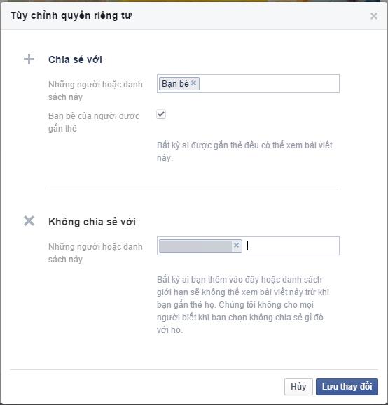 Ngoài thiết lập hiển thị với bạn bè hoặc bạn của bạn bè, bạn có thể thiết lập một nhóm bạn riêng hay một vài người bạn nào đó không được phép xem bài chia sẻ của bạn một cách dễ dàng, giống như thiết lập cho phép ai có thể xem bài viết, hình ảnh của mình vậy.