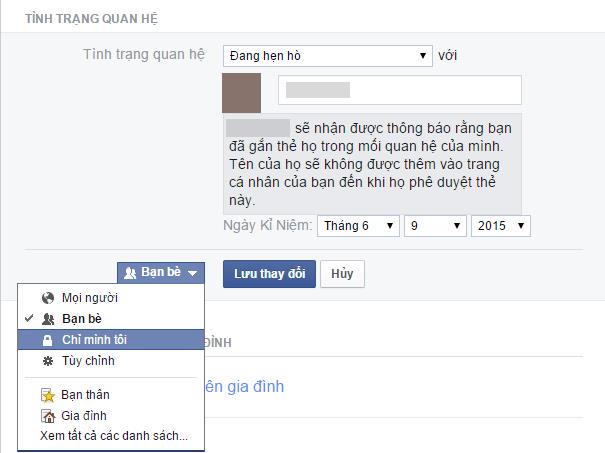 Nếu sợ bị ghen hoặc đơn giản là không muốn người khác nhìn thấy mối quan hệ hiện tại, bạn có thể chỉnh sửa những ai có thể xem mối quan hệ của mình một cách dễ dàng.